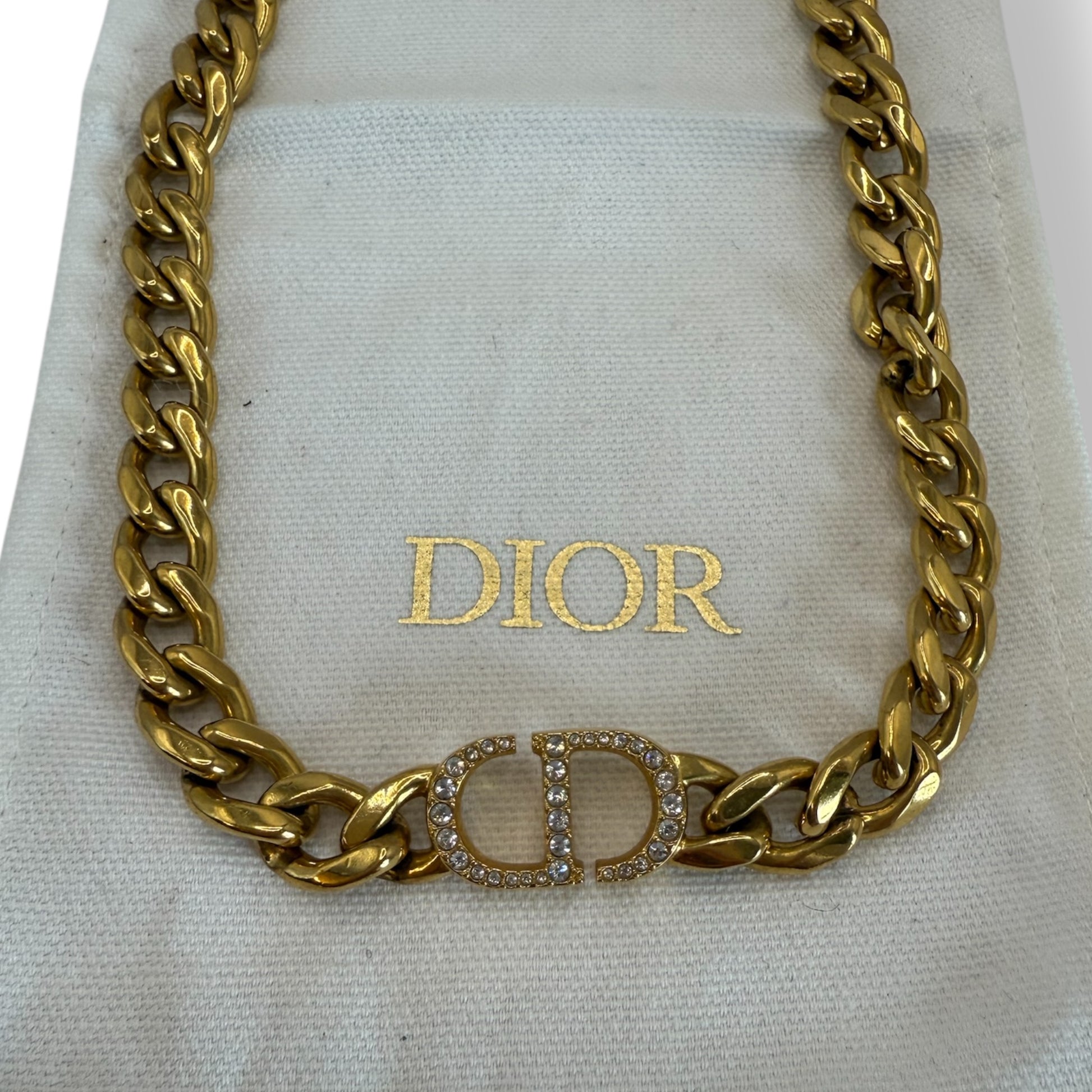 Gold-tone chain necklace featuring a pavé crystal ‘CD’ logo at the centre.